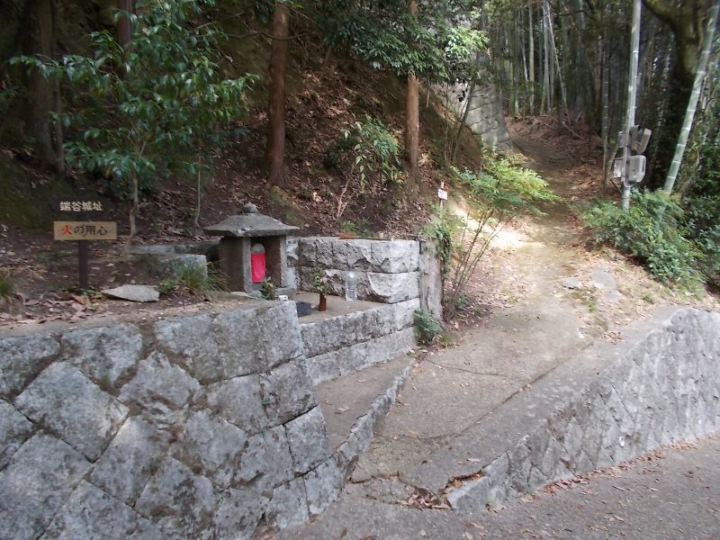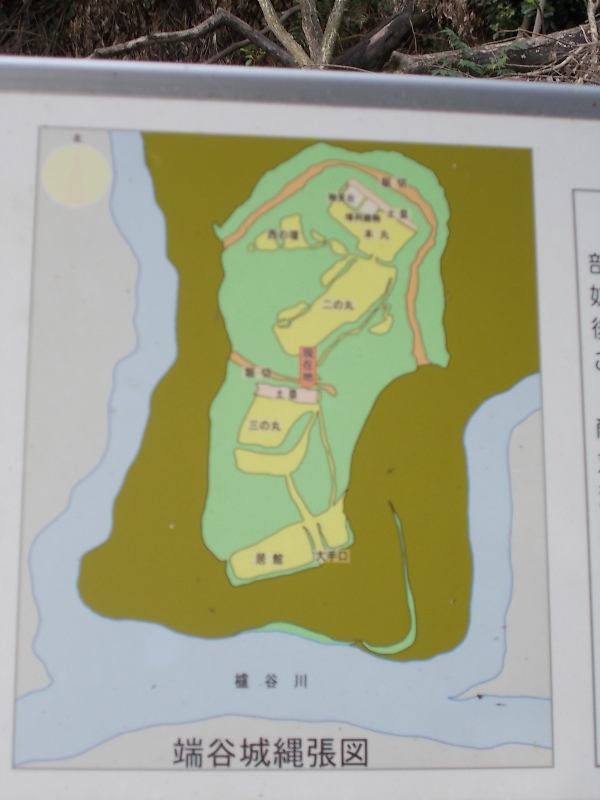 満福寺入口に登城口が標示されている。寺に入らずに数分で城跡に至る。 |