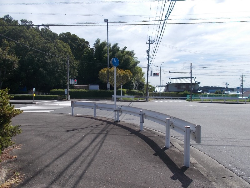 城山四丁目交差点。横断歩道を渡って写真左側が城跡である。 |