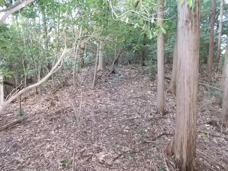 城跡としての標示はなかった。南西の曲輪から主郭方向を望む。