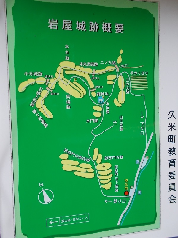 国道181号線から岩屋城への標示に従い北上すると2q弱で登城口に至る。 |