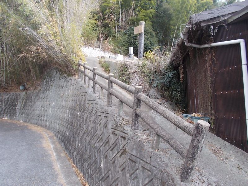 駐車場から少し進むと「鳴滝山城まで300m」の標示がある。階段を登って進む。耕作放棄された畑(?)の間を進む道はかなり荒れている。足ごしらえに気を付けられたい。 |