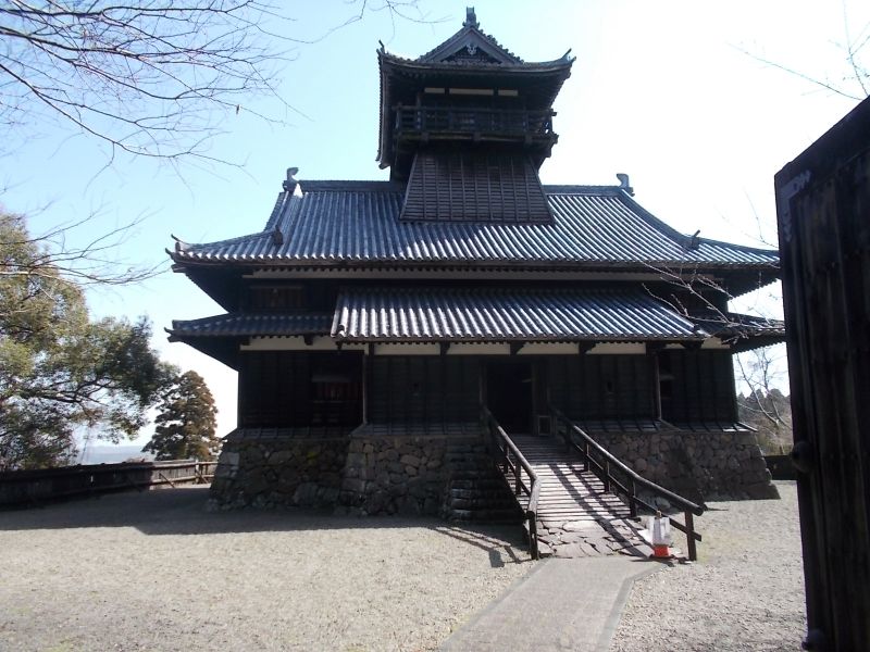 東端の曲輪の模擬天守を北西より望む。