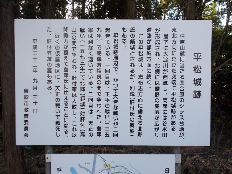 南北朝期に築城されたようであり、元亀4年(1573)の肝属氏と北郷氏との合戦の舞台となった。慶長4年(1599)の庄内の乱に際しては、島津氏に抵抗した伊集院氏の拠点として使われ、その際に四重の堀切も築かれたと見られている。乱後城は廃された。(「九州の名城を歩く 宮崎・鹿児島編」(吉川弘文館、2023年)) |