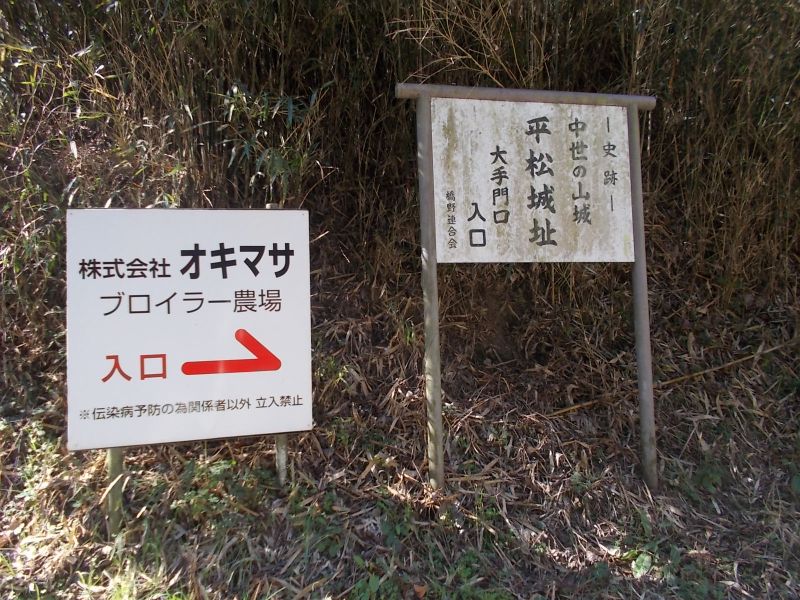 県道109号線沿いに城跡東側から入る道がある。表示に従い、養鶏場の脇を抜けて進むと10分程度で主曲輪部分に至る。 |