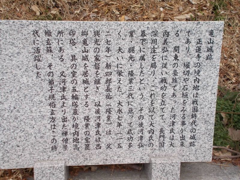 室町時代から戦国時代にかけて、宗像氏あるいは大内氏の配下であった河津氏の城とされる。